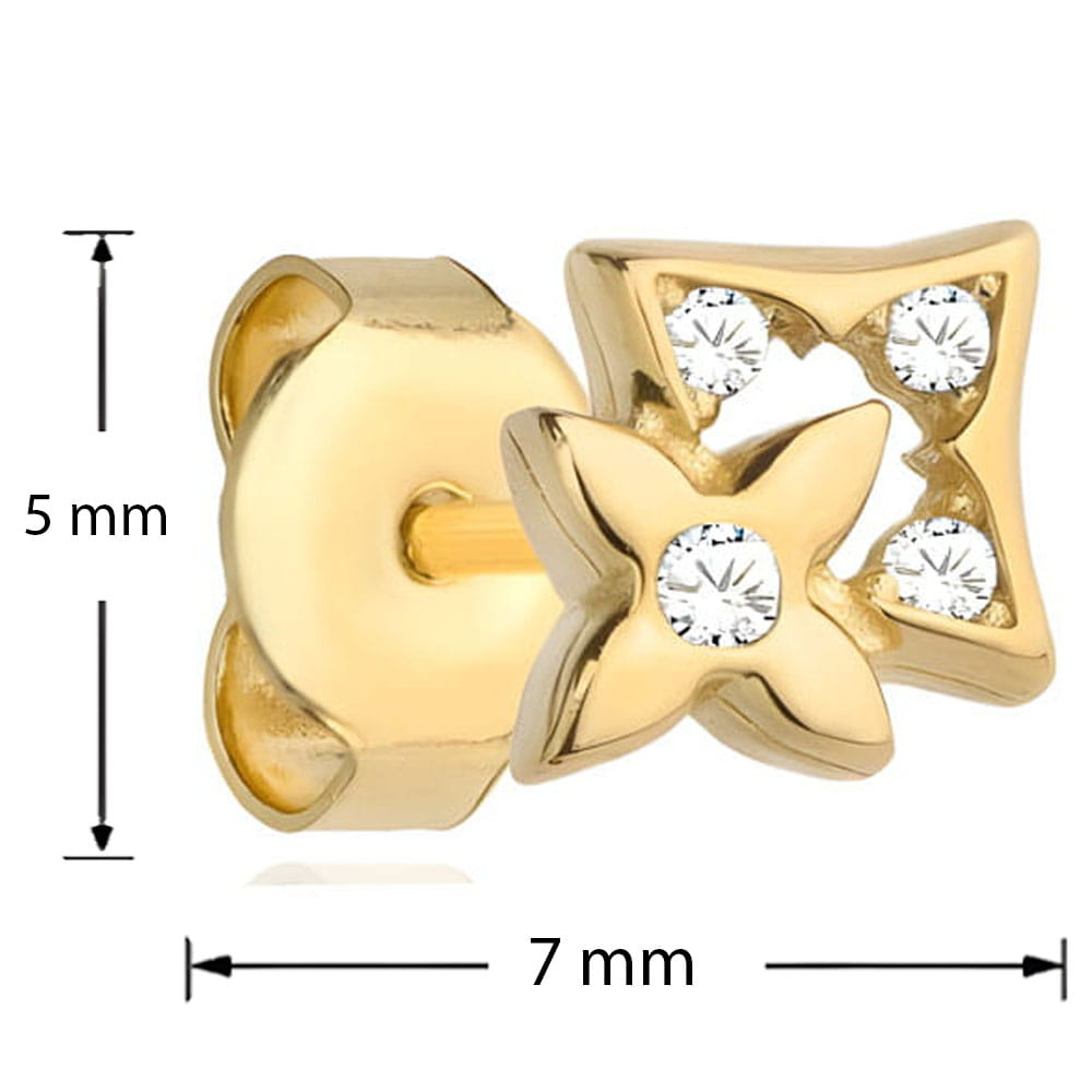 Złote Kolczyki pr. 585 Kwiatuszek w Kwadraciku z Cyrkoniami - Złoto 585