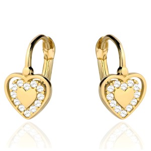 Złote Kolczyki pr. 585 Trzy Serca Złote z Cyrkonii - Złoto 585
