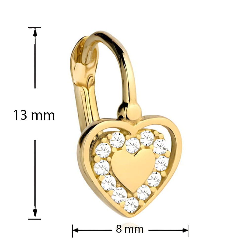 Podaruj sobie lub bliskiej osobie odrobinę elegancji z naszymi złotymi kolczykami serduszka próby 585. Te urocze kolczyki, ozdobione błyszczącymi cyrkoniami klasy AAA+, symbolizują niekończącą się miłość i głębokie uczucia. Idealne na każdą okazję, dodają subtelnego blasku każdej stylizacji.