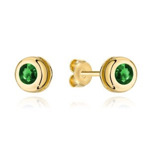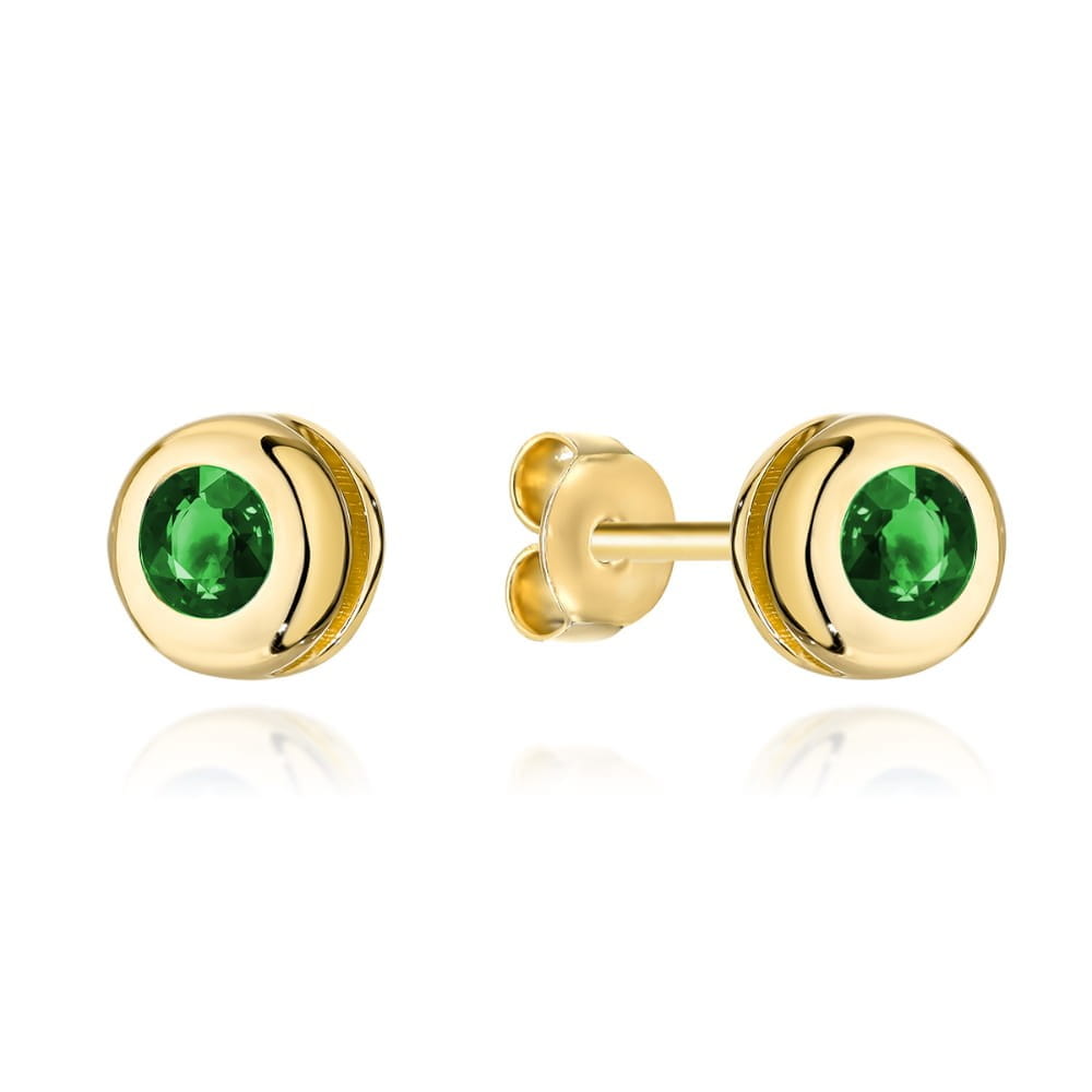 Złote Kolczyki z Zielony Kamieniem Otoczone Złotem - Złoto 585