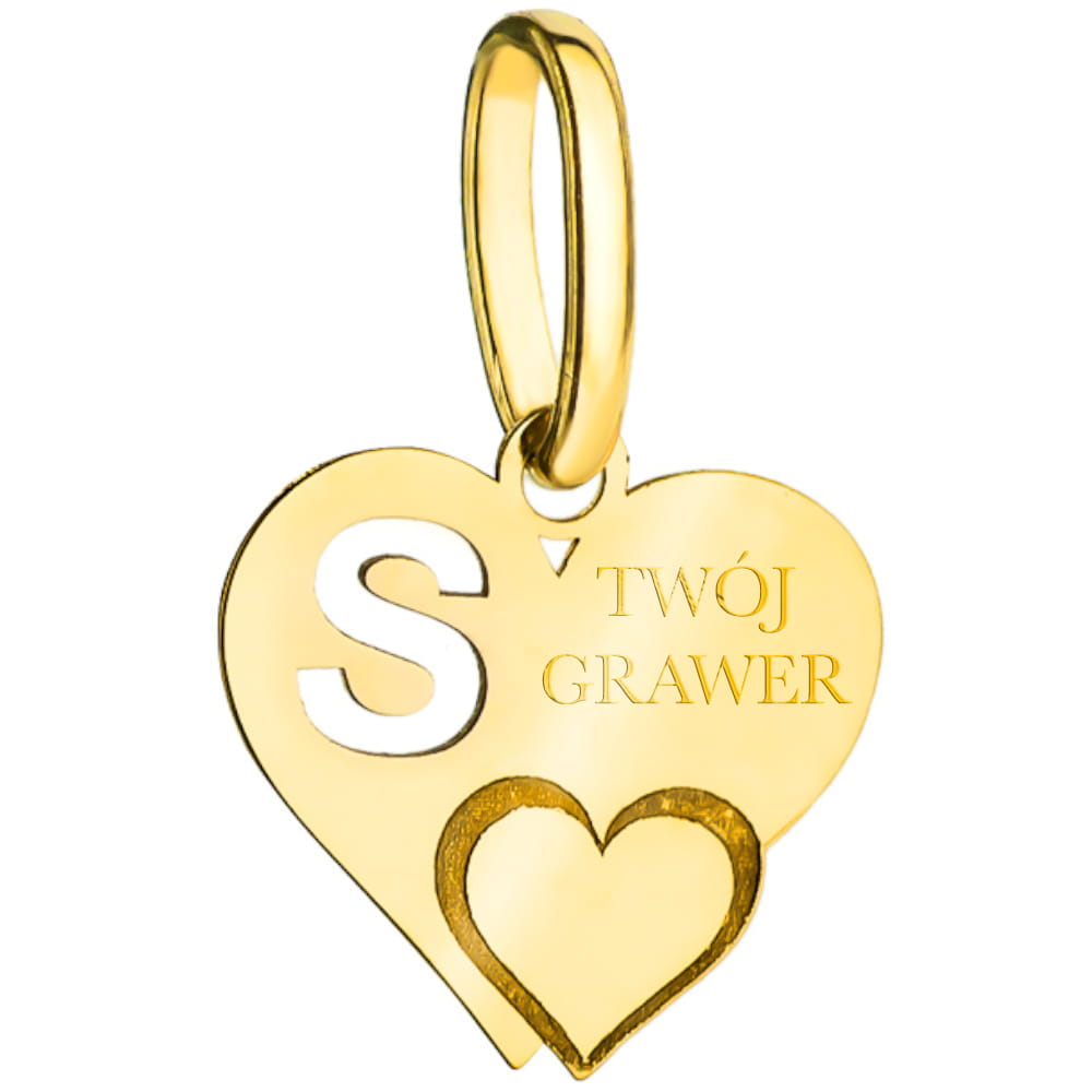 Złote Serce Zawieszka z Literką i Możliwością Grawerowania - Literka S - Idealny Prezent dla Żony, Córki, Mamy