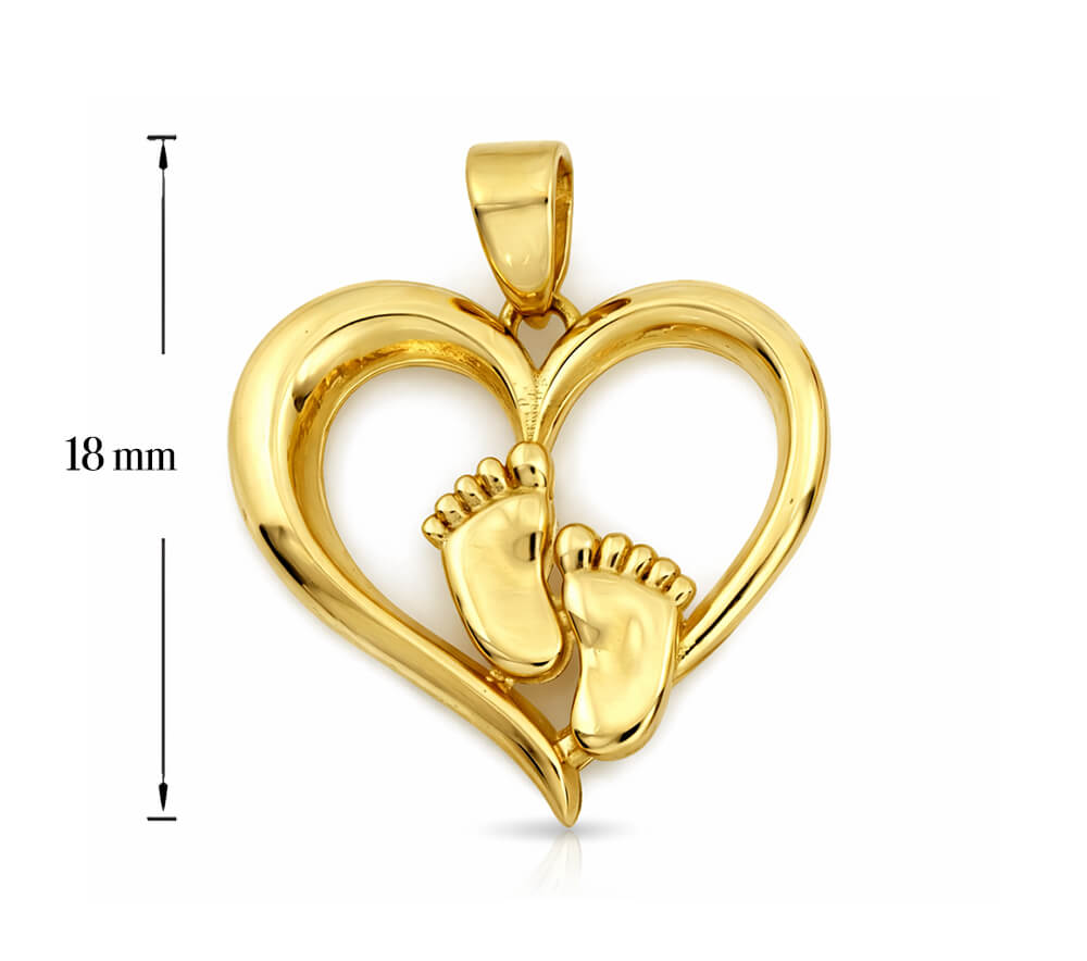 Złoty naszyjnik serce ze stópkami – złoto próby 375 Symbol narodzin i miłości