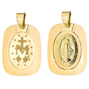 Złoty Medalik Matka Boska Cudowny w Blaszce - Złoto 585 - Prezent na Komunię