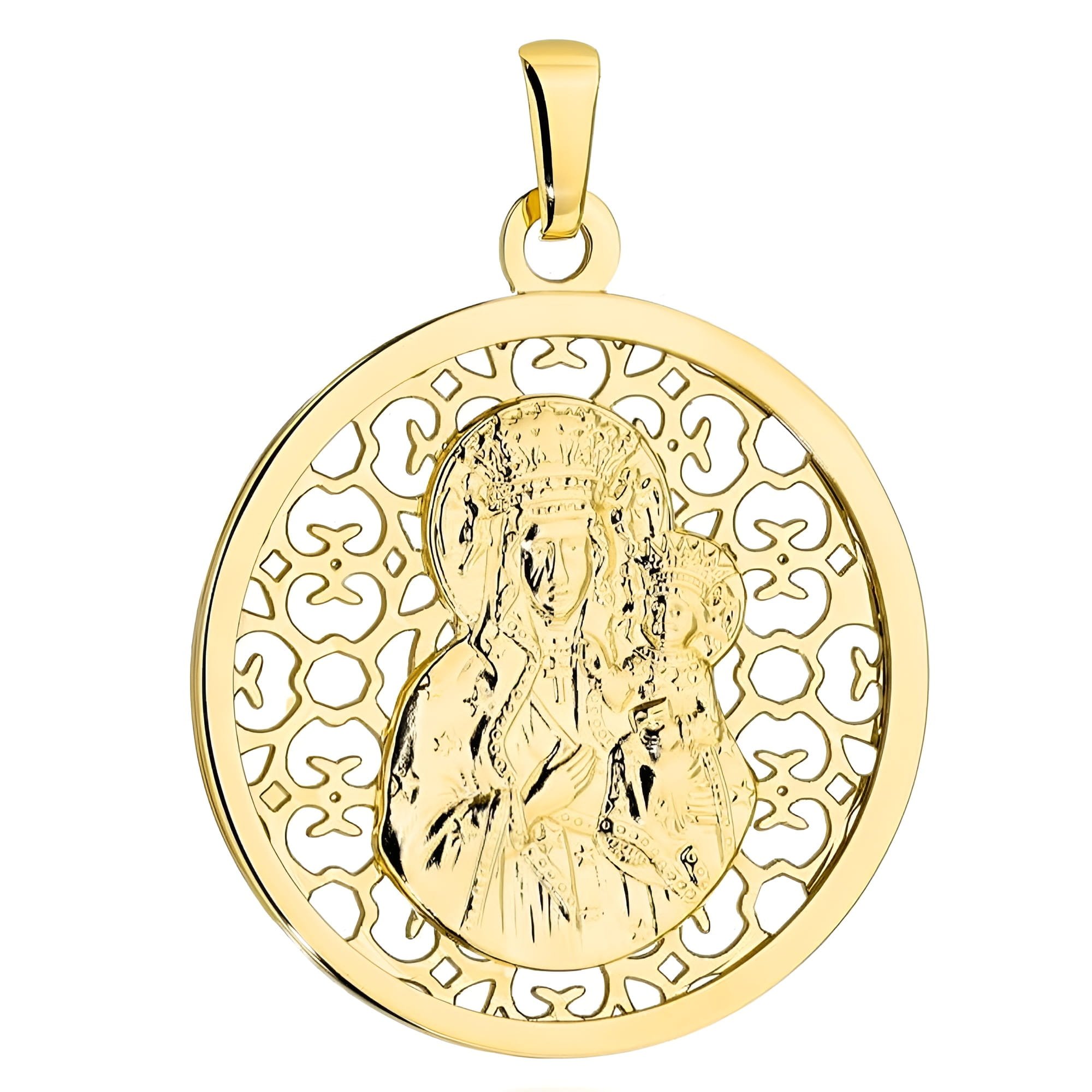 Złoty Medalik Matka Boska Częstochowska w Ażurowym Kole - Złoto 585