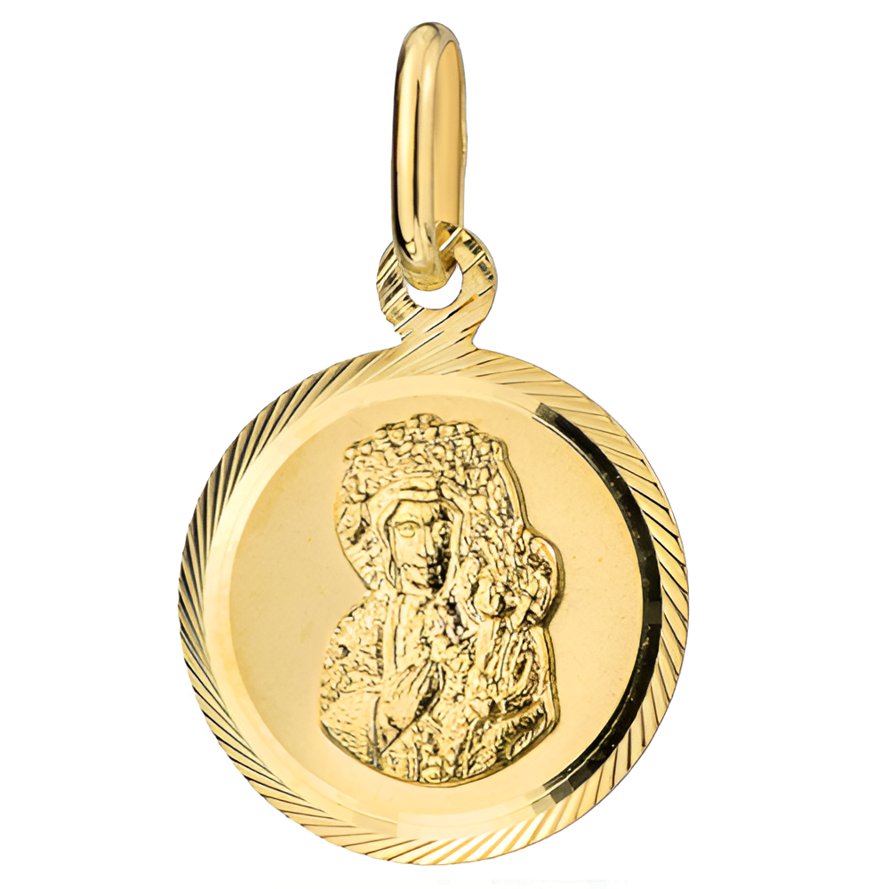 Złoty medalik Matki Boskiej Częstochowskiej pr. 585 to elegancka biżuteria o głębokim znaczeniu duchowym, stworzona z najwyższą precyzją przez Mennicę Świdnicką. Starannie wykonany wizerunek Matki Boskiej osadzony w klasycznej oprawie łączy tradycję i nowoczesność. Złoto próby 585 gwarantuje wyjątkowy połysk, trwałość i wartość na lata. Idealny na chrzest, komunię, bierzmowanie lub jako pamiątka wiary dla bliskiej osoby. To więcej niż ozdoba – to symbol opieki, miłości i duchowego wsparcia.