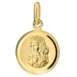 Złoty Medalik Matka Boska Częstochowska w Diamentowanym Kole (duży) - Złoto 585 - Prezent na Chrzest