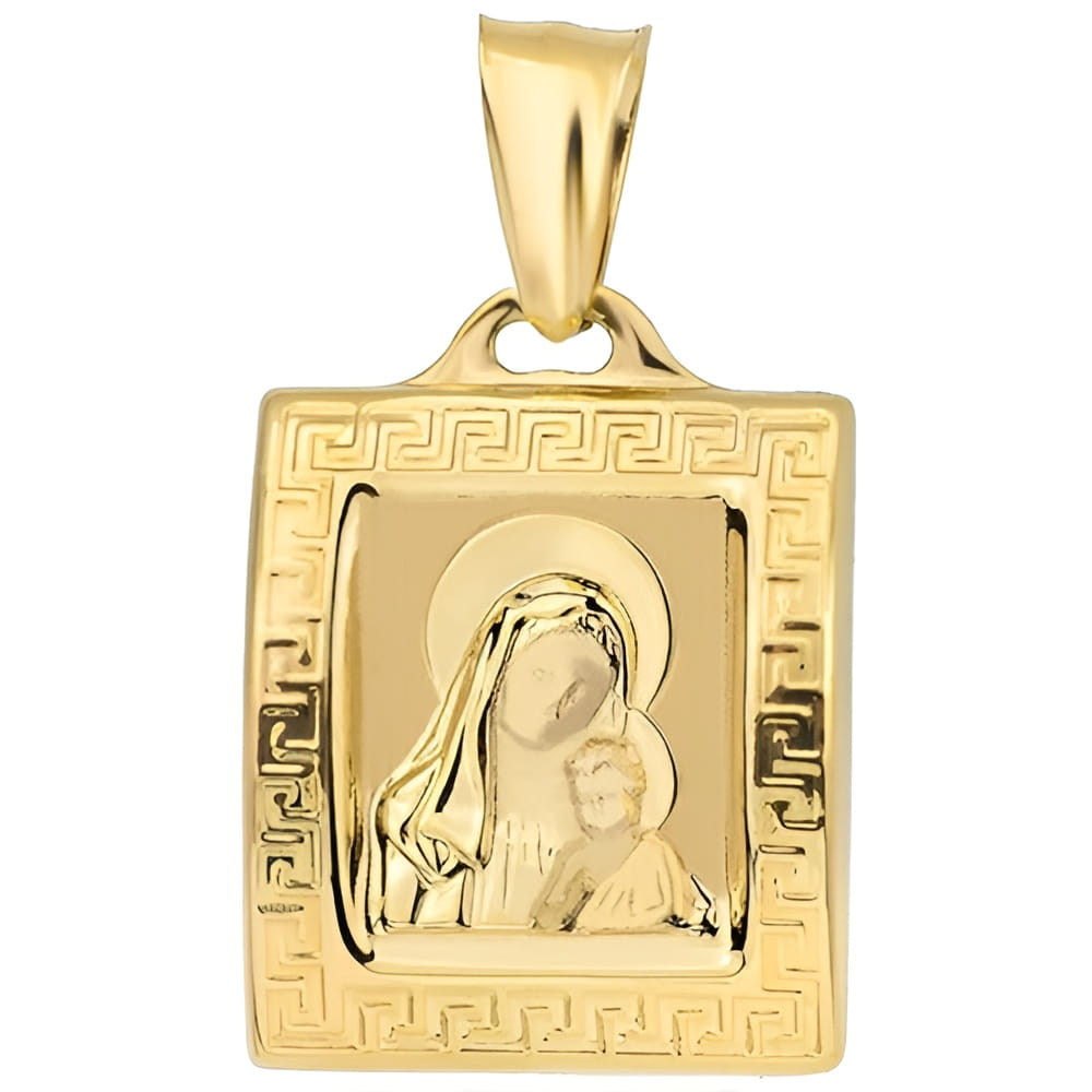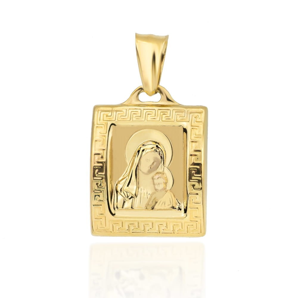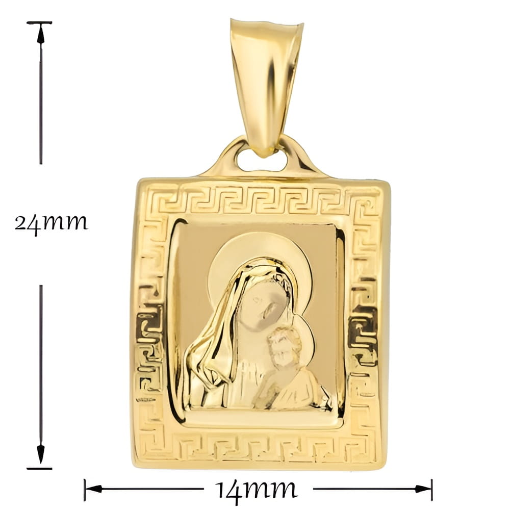 Złoty Medalik Prostokątny Matka Boska w Obrazie - Złoto 585 - Prezent na Komunię