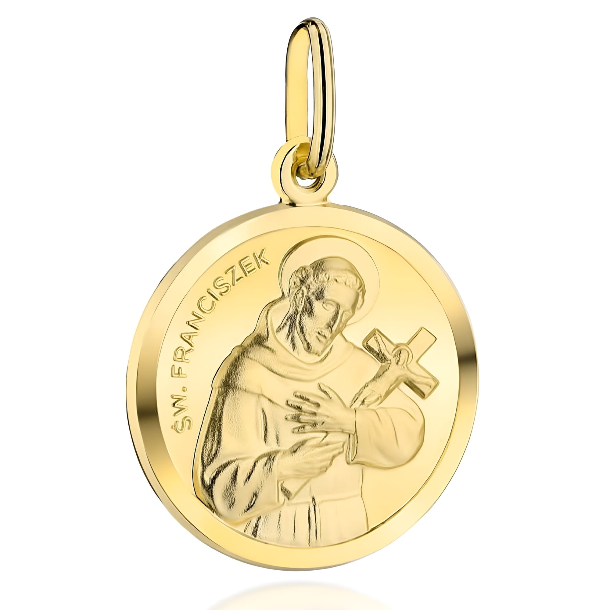 Złoty Medalik Święty Franciszek - Złoto 585 - Prezent na Chrzest