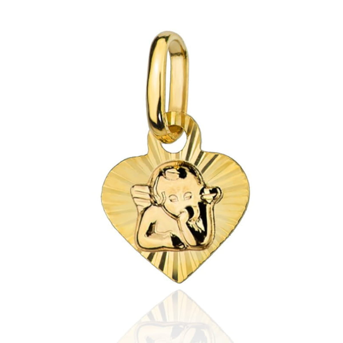Złoty Medalik z Aniołkiem w Diamentowanym Sercu - Złoto 585