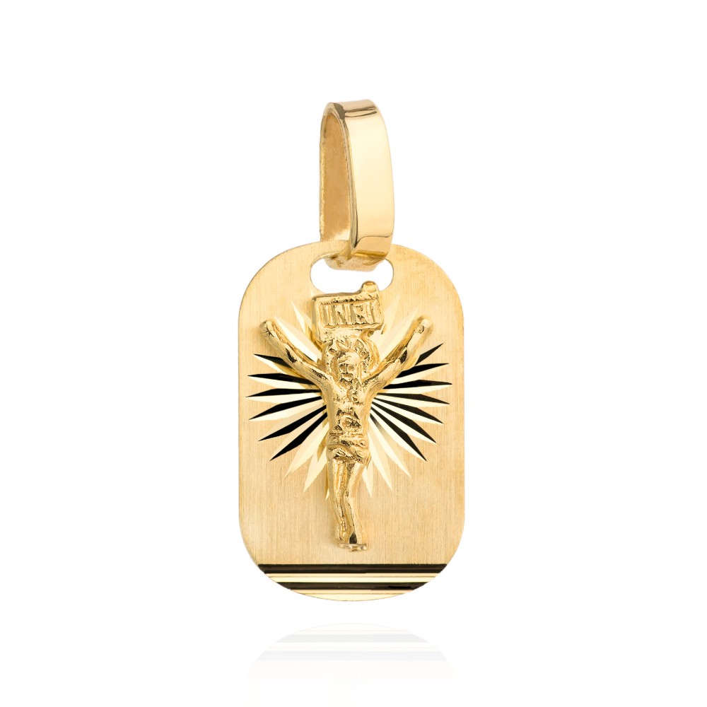 Złoty Medalik z Ukrzyżowanym Jezusem - Złoto 585 - Prezent na Bierzmowanie